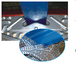 1、采用獨特定位技術(shù),為避免板片在拆裝時上下定位槽發(fā)生變形,定位裝置采用了翻邊加工設(shè)計,多次拆裝后定位仍然精確、定位點更耐磨,同時也起到了防止定位槽對維修人員的損傷。板片四個角邊采用輔助定位錐型裙邊,達到自動對位之目的。