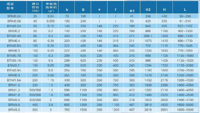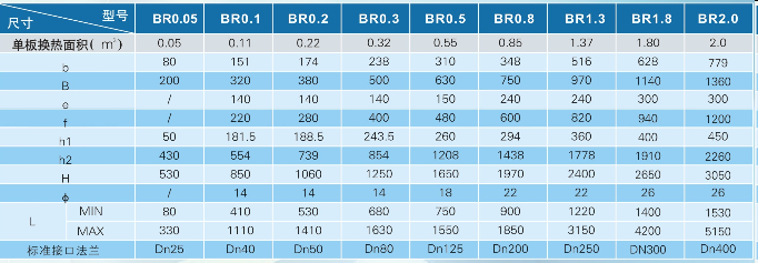 BR系列板式換熱器主要安裝尺寸;