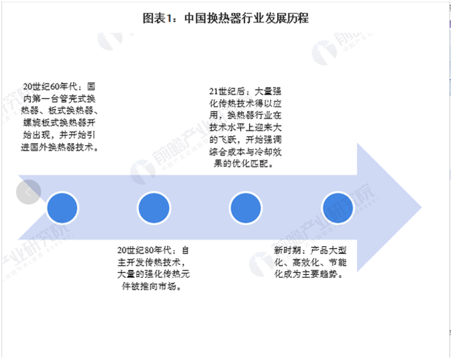換熱器又稱熱交換器、熱交換設備,是工業(yè)部門保證某些工業(yè)流程和條件而廣泛使用的通用熱工設備。在工業(yè)生產過程中發(fā)揮重要作用。中國換熱器行業(yè)起步較晚,20世紀60年代,國內國產第一臺管殼式換熱器,第一臺板式換熱器,第一臺螺旋板式換熱器才出現。20世紀80年代后,我國出現了自主開發(fā)傳熱技術的新趨勢,大量的強化傳熱元件被推向市場,國內傳熱技術高潮時期的代表產品有折流桿換熱器、新結構高效換熱器、高效重沸器、高效冷凝器、雙殼程換熱器、板殼式換熱器、表面蒸發(fā)式空冷器等一批優(yōu)良的高效換熱器。